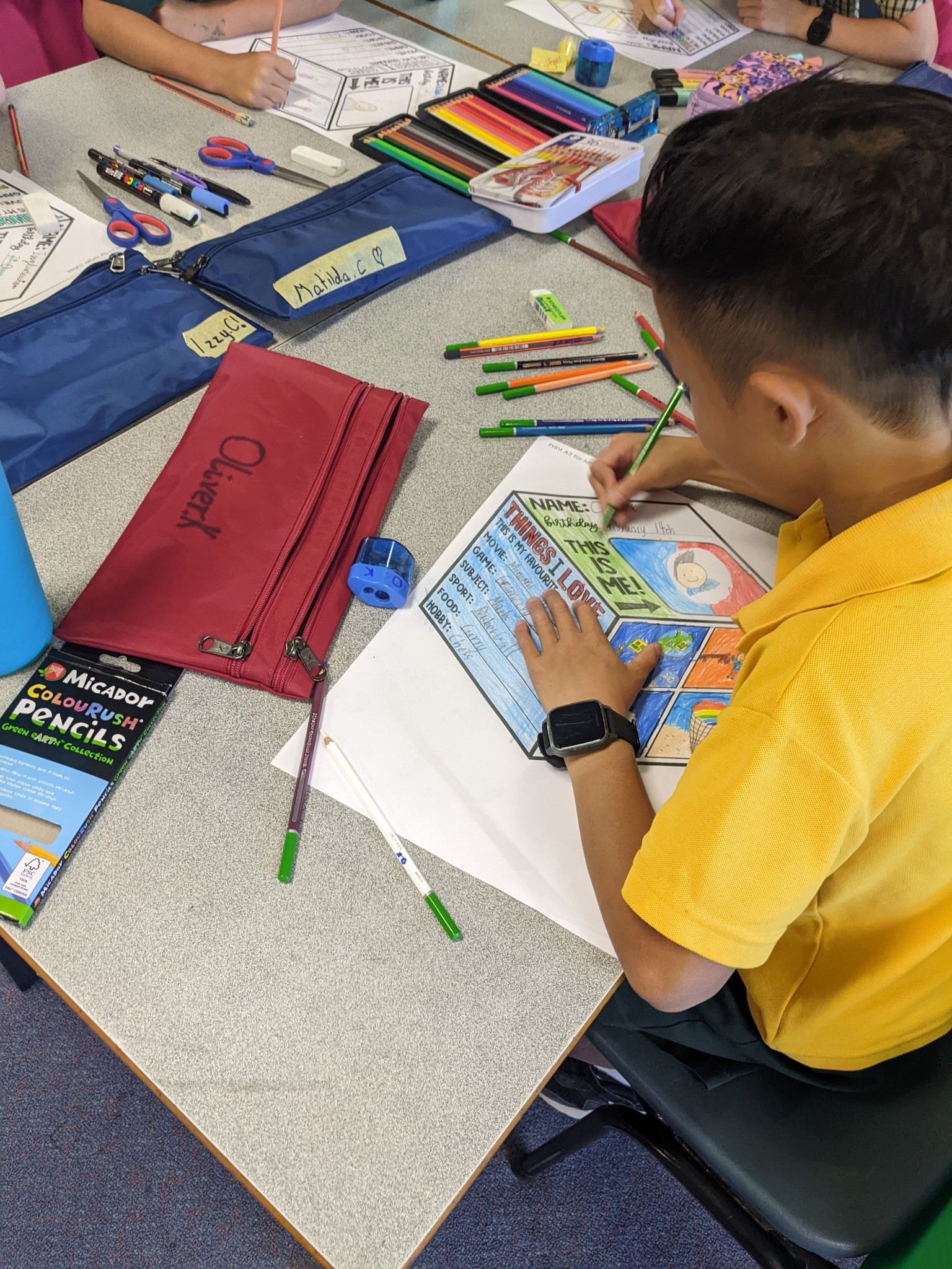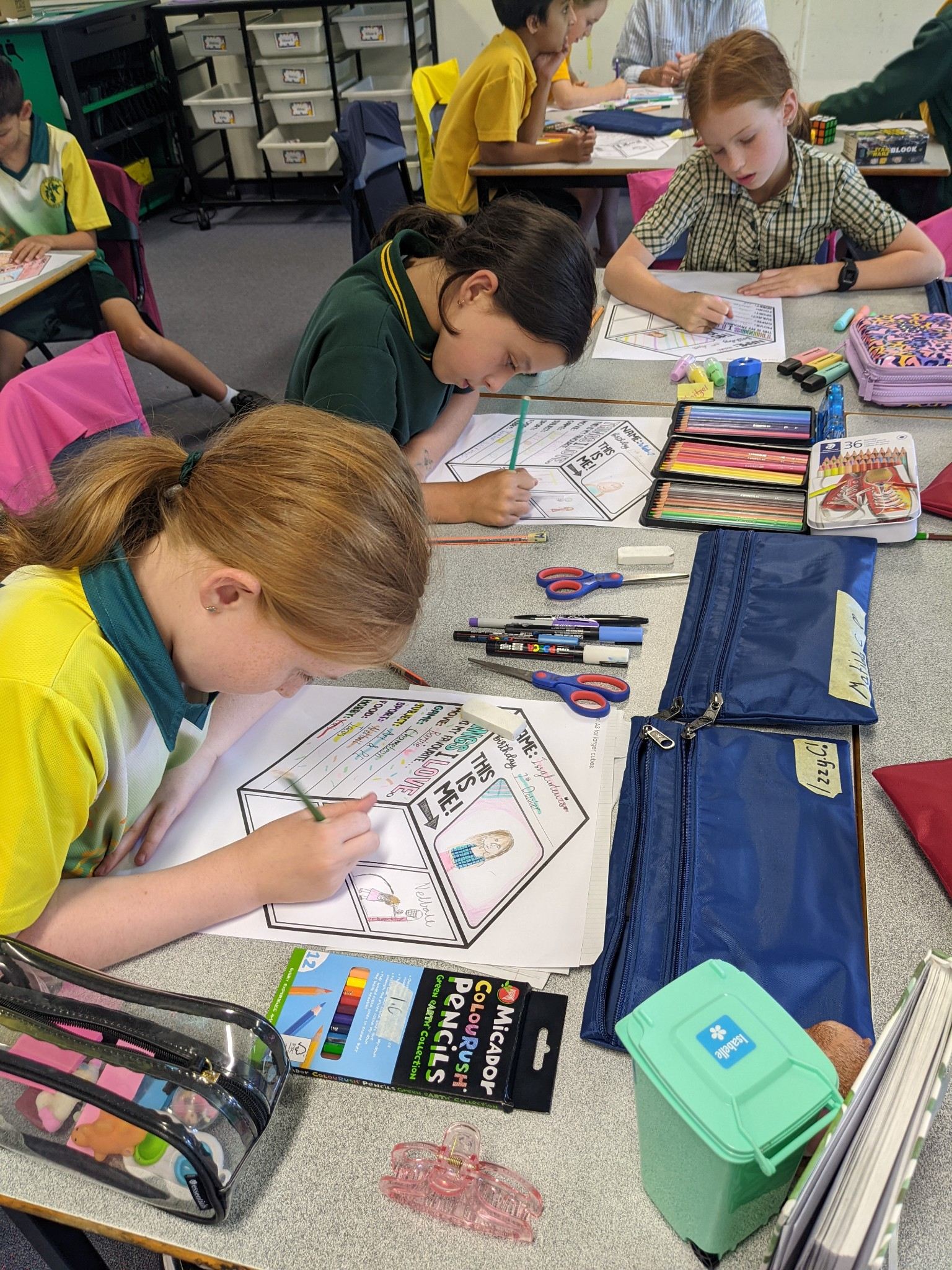 Year 4 Hand affirmations and making individual cubes that stack together to make a classroom