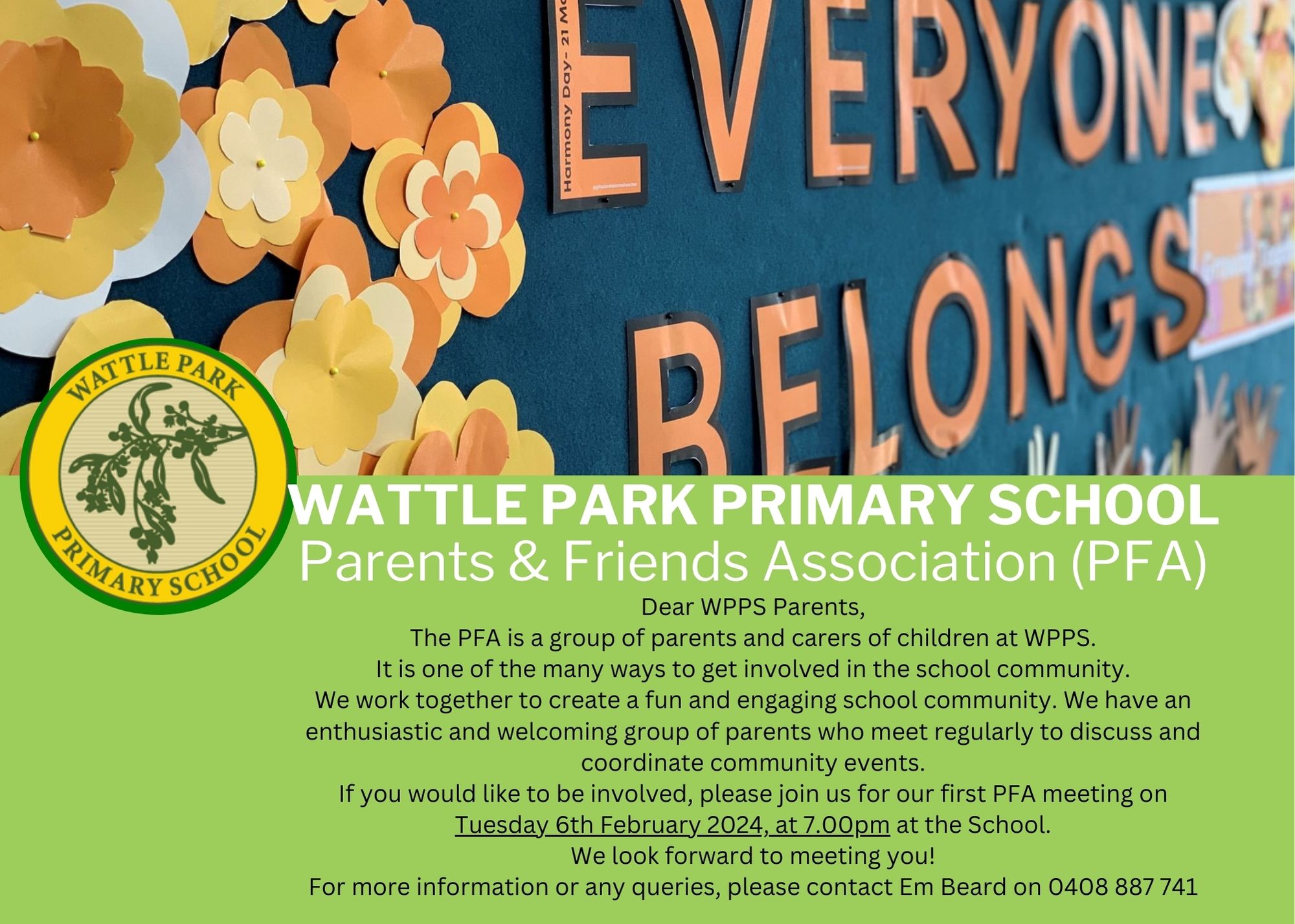 Call the office on 98082165 or email the WPPS office wattle.park.ps@education.vic.gov.au