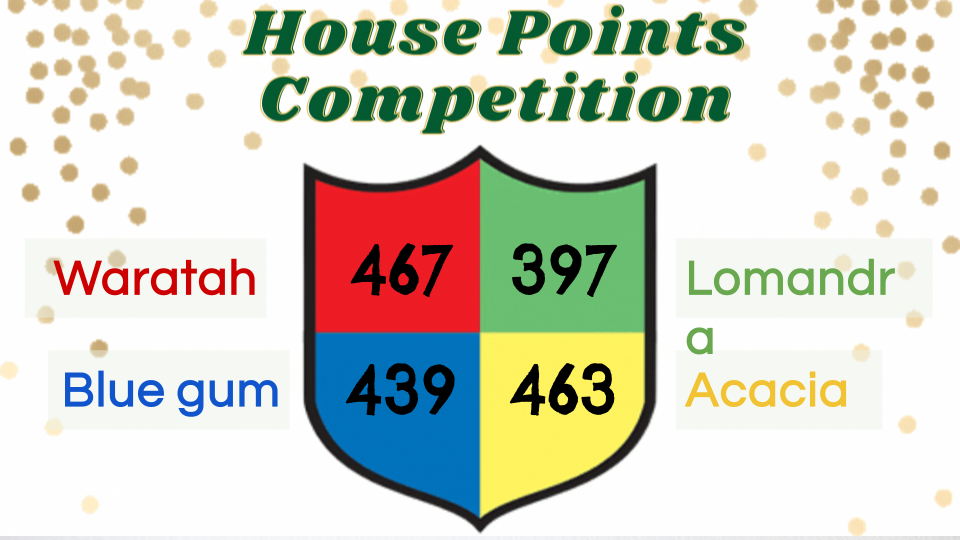 The House Points have been collected for this week. The winning house decorates the trophy with their colours and has it displayed in the foyer of the school.