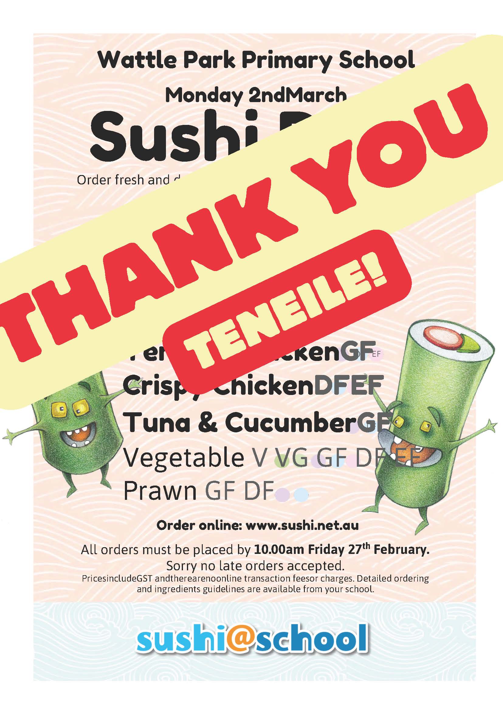 Always popular with our community, your time, attention to detail and commitment ensured Sushi Day ran smoothly and provided our students with a fun and delicious lunch experience while also raising valuable funds for our school.