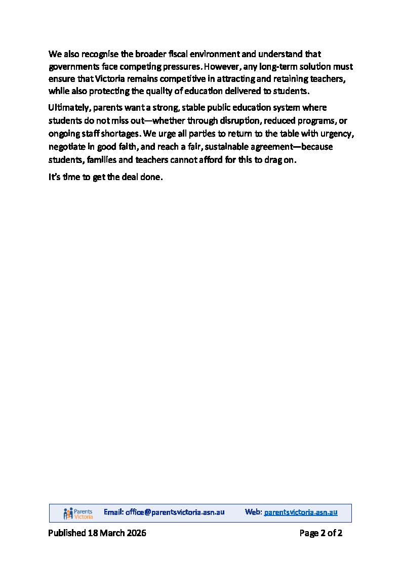 This industrial action is part of a broader effort to advocate for fair and equitable pay for teachers in Victoria, in line with their colleagues in other states. Our staff are deeply committed to their profession and to the students they support each day, and this action reflects the importance of recognising and valuing their work.