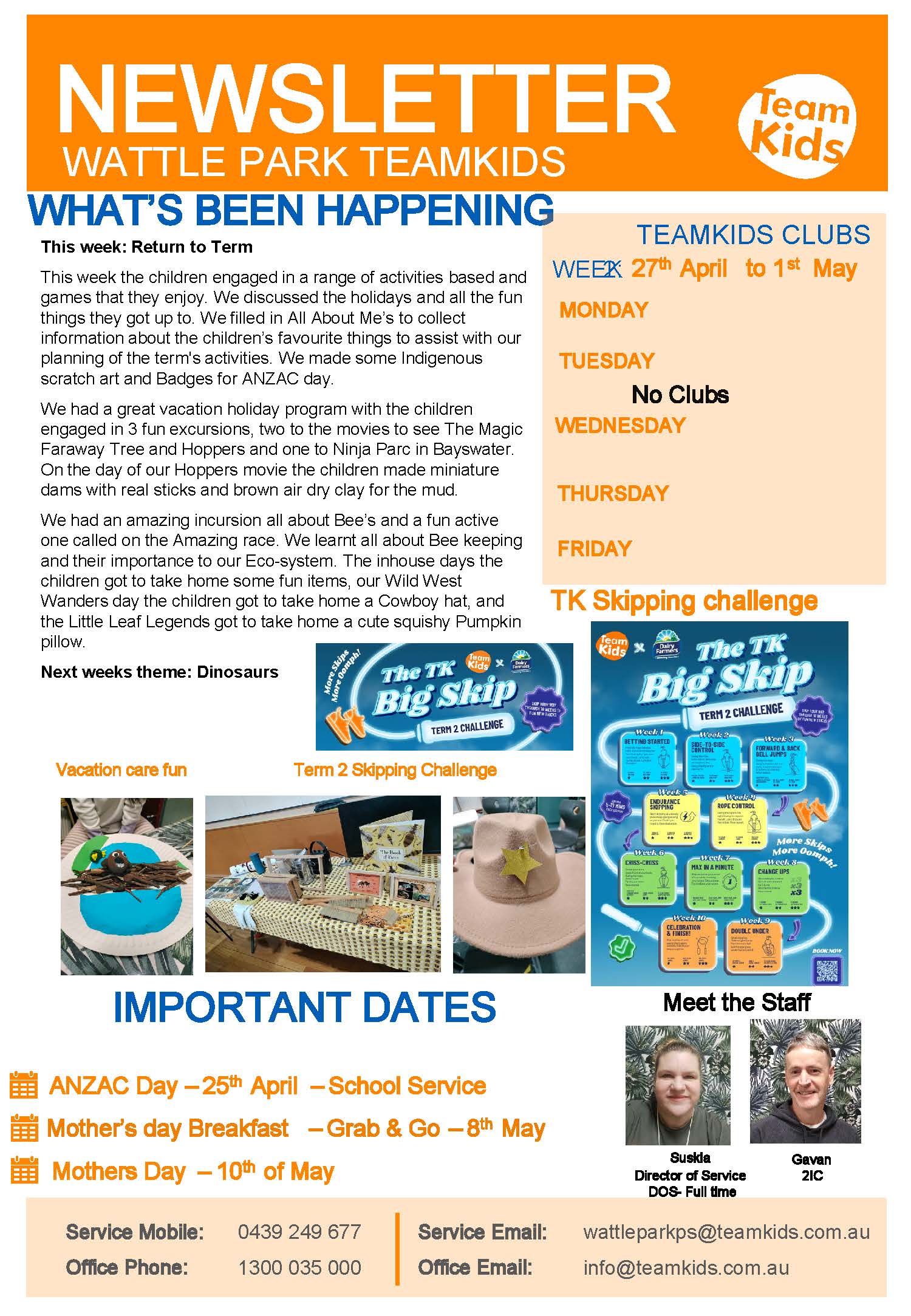 A reminder also we have our ANZAC Day Ceremony beginning at dawn tomorrow.