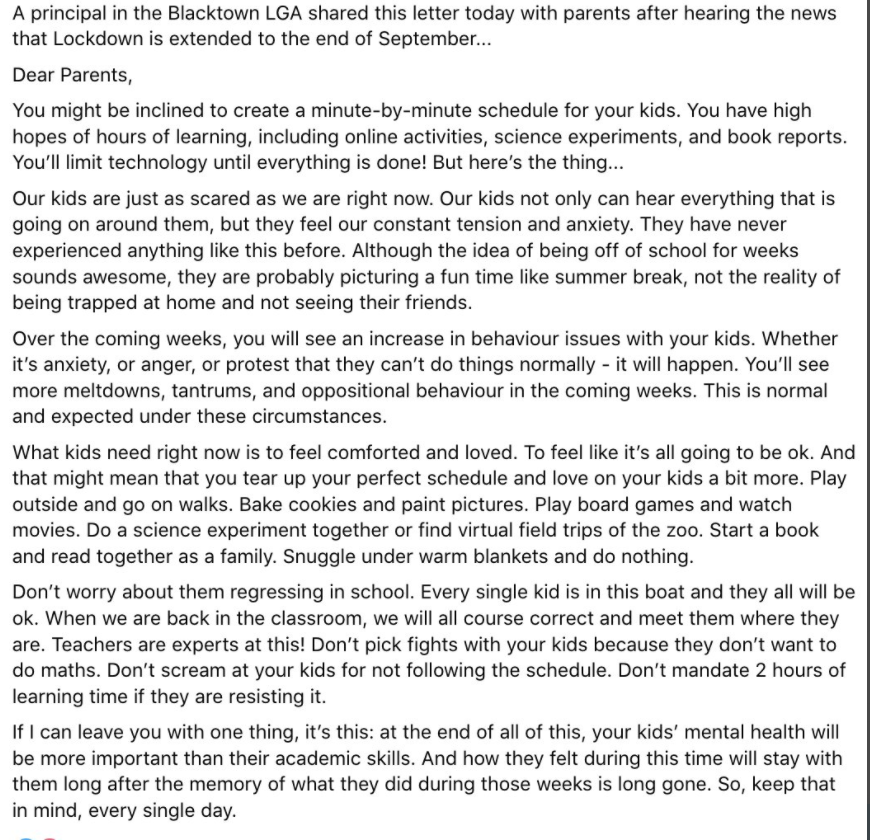 I’ll leave you with a twitter post from a Principal in Sydney that he sent to his school community. I couldn’t say it any better: