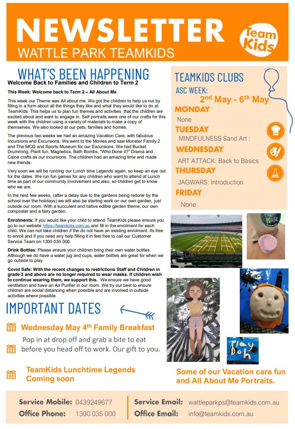 If you would like to join the Parents & Friends Association – we’d love to have you. We’re a merry band of helpers and always keen to welcome more people. Please contact Anthony Hall, PFA President, on 0409 806 478, or email pfa@wattleparkps.vic.edu.au